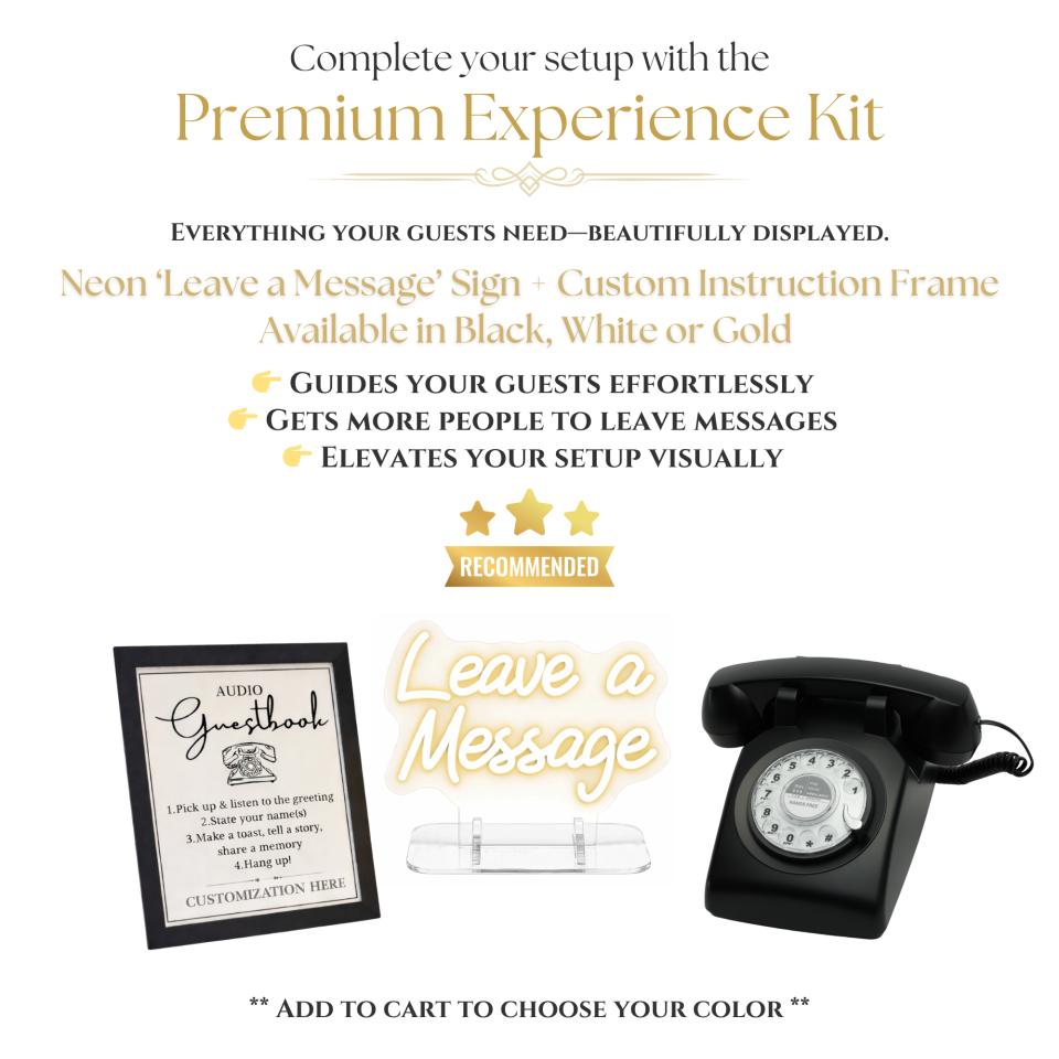 Guests lift the handset, hear your custom greeting, and leave a voicemail after the tone—capturing laughter, inside jokes, emotional tributes, and spontaneous moments.
