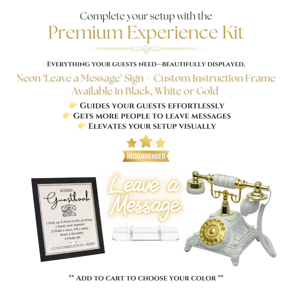 Guests lift the handset, hear your custom greeting, and leave a voicemail after the tone—capturing heartfelt messages in the most intimate way possible.